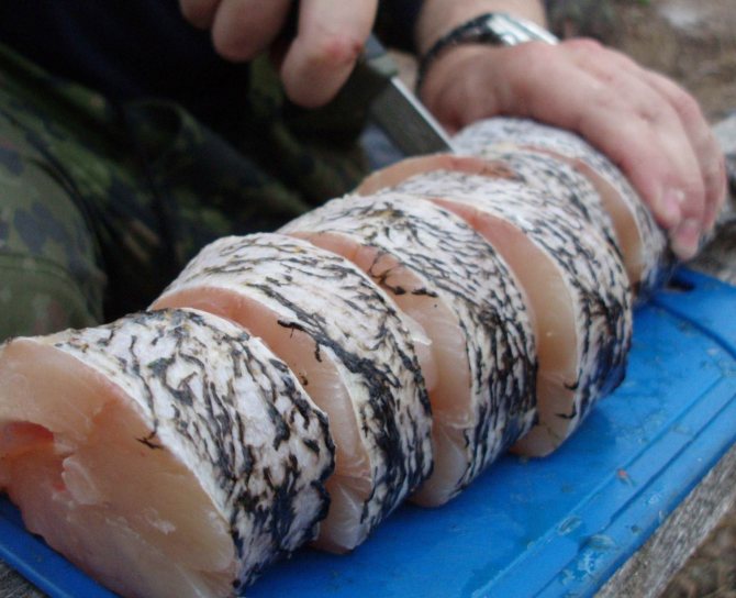 - Крупную рыбку можно разрезать на три части.