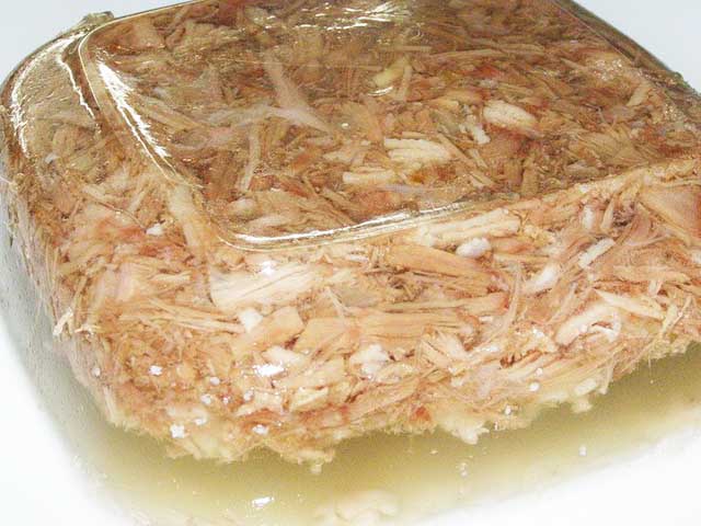 Этим и отличается оно от холодца, для него нужны дополнительные желирующие вещества, в данном случае — это желатин, который, кстати, может быть как в порошке и гранулах, так и в пластинах.