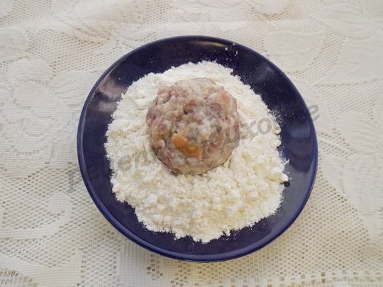 Каждую котлету обваливаем в муке, насыпанной в блюдце.