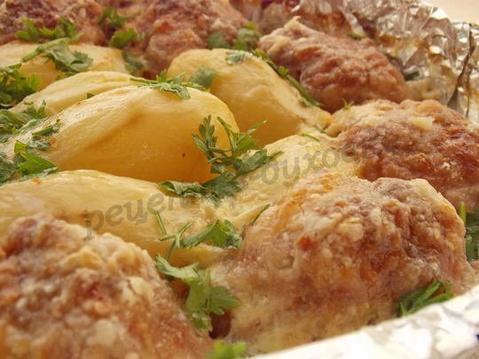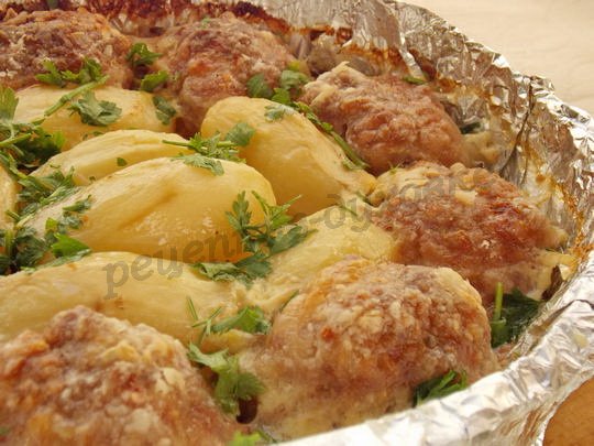 Приготовление картофеля с котлетами в духовке