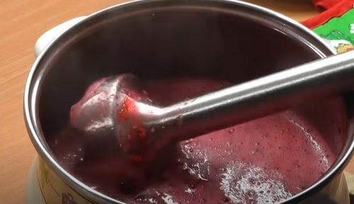 - Ягоду залейте водой, поварите 4-5 минут, затем перемелите в блендере.