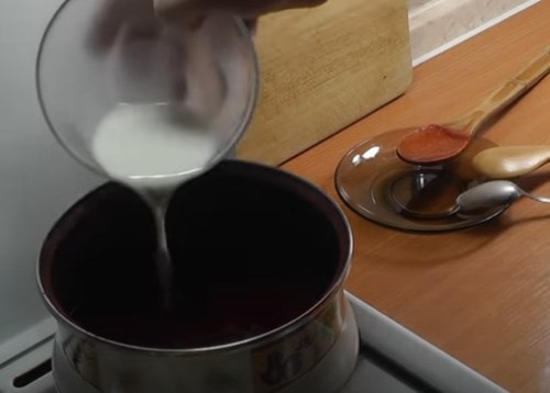 - Положить корицу, крахмал (предварительно смешать его с водичкой), специи и соль по вкусу.