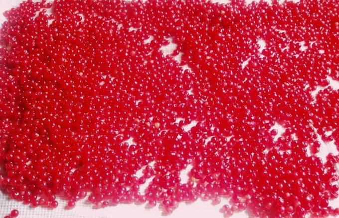 Какой шашлык без аджики. Приготовим из красной смородины в меру острую аджику. Отберем и помоем 250 г. Все ягоды должны быть спелыми. Цвет спелых ягод рубиново-красный. Чистые ягоды пересыпаем в большой салатник, давим пестиком до образования кашицы.