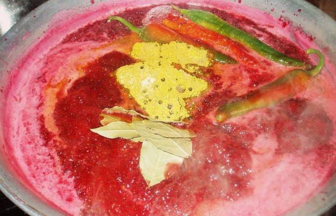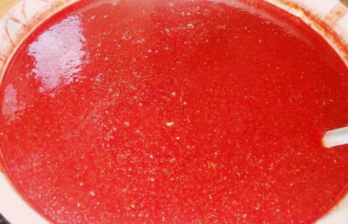 На заметку! Горячий продукт будет жидким, он желируется по мере охлаждения. Весь оставшийся жмых можно применить в качестве маринада для курицы или отбивных.