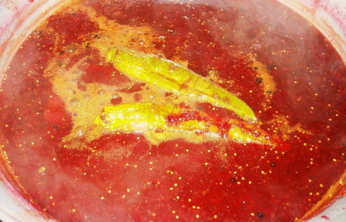 - Отключите огонь, добавьте уксус. Пока соус горячий, разлейте его по стерильным банкам, переверните их, укутайте на сутки. Хранить заготовку на зиму лучше в погребе, но даже в темной квартирной кладовке она не испортится.