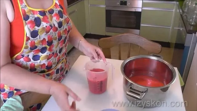 - В сок добавляем 200 мл воды, чтоб получить 2 литра жидкости.
