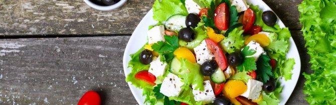 Греческий салат — диетическая версия классического рецепта. Этот удивительный салат известен в диетическом питании очень давно и на первый взгляд может показаться удивительным тот факт, что его можно сделать еще более полезным для фигуры.