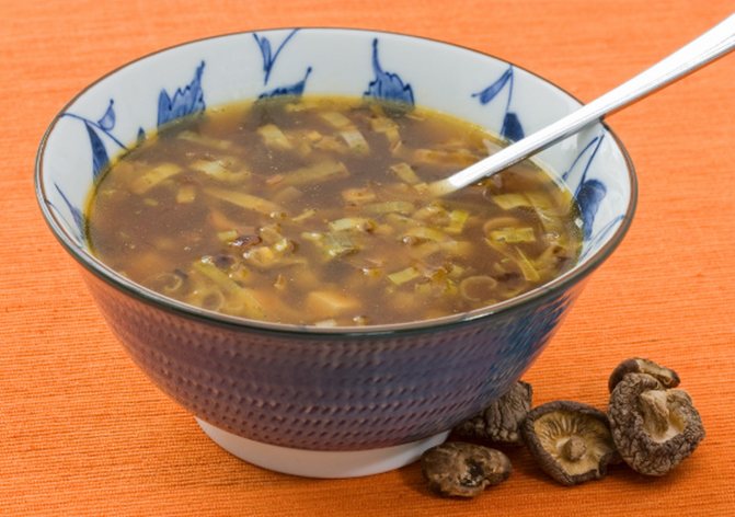 Самыми полезными грибами считаются еринги — белые степные грибы. В народе они более известны как королевская вешенка. Их выделяют за питательную ценность и приятный вкус, а также за большое содержание витаминов B и D2. Они являются лучшим из возможных вариантов для приготовления супа, так как полезные микроэлементы в них не разрушаются под воздействием температуры. Однако можно использовать и любые другие лесные грибы или шампиньоны.