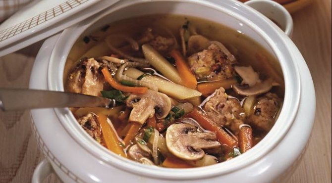 Суп с фрикадельками и грибами