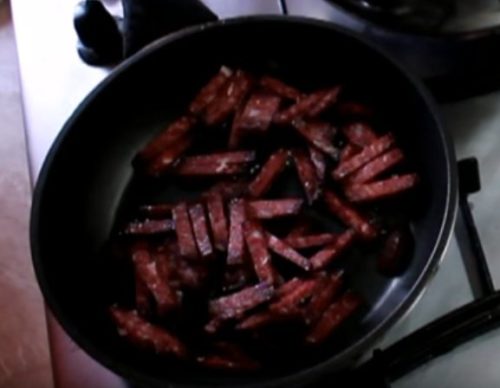 - Сырокопченая колбаса – 100 г.