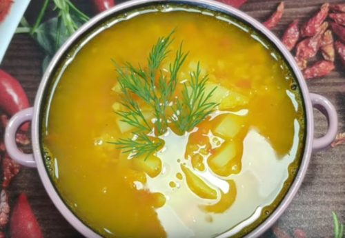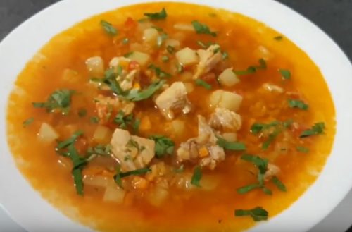Суп из красной чечевицы на курином бульоне