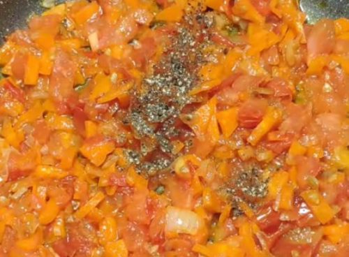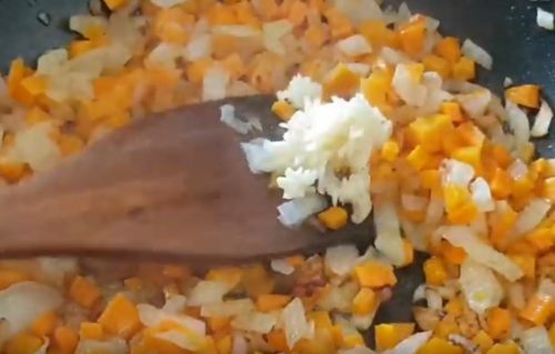 В сковородке растопите масло. Добавьте овощи. Готовьте до красивого золотистого оттенка. Огонь должен быть средним. Чтобы овощи не пригорели, постоянно их перемешивайте. Если нет оливкового масла, то можете использовать любое какое есть в хозяйстве.