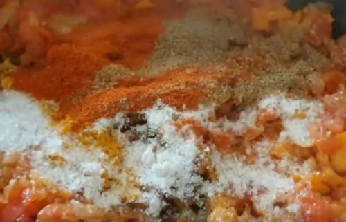 Посыпьте паприкой и куркумой. Размешайте. Потушите 3 минуты.