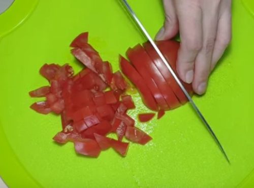 Нарежьте помидор.