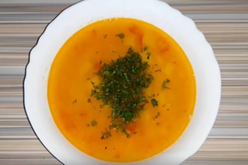Суп варят без мяса на курином бульоне, но при желании можете добавить кусочки курицы. Похлебка получается густой, ароматной и для многих необычной по вкусу. Когда постоит немного, то добавленные компоненты сильно разбухнут, и она станет похожей на суп-пюре.