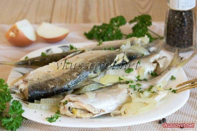 Вот и все ряпушка тушеная с луком готова, переложите рыбу на сервировочное блюдо и подавайте к столу.