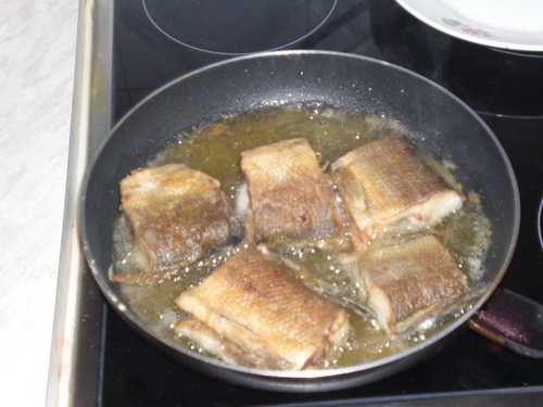 Что касается огня, я жарю на довольно таки интенсивном, но не очень большом огне. Если делать огонь меньшим, есть вероятность, что рыба внутри станет не жареной, а пареной.