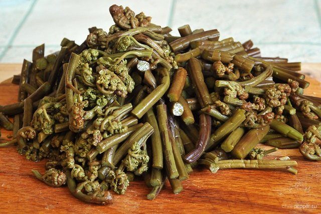 Сушенный или соленый папоротник чаще используется для приготовления различных блюд, так как он способен храниться длительное время.