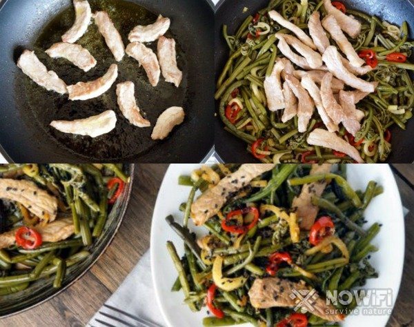 - Нарезанные кусочки папоротника добавить к мясу еще на 5 минут.