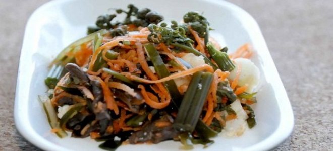 Классический салат из папоротника по-корейски приятно удивит любого гурмана, а его приготовление не займет много времени.