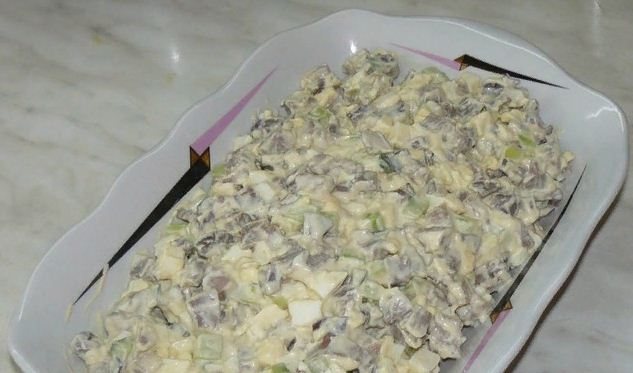 Салат из сердца классический – с яйцами, свиным сердцем и маринованным луком