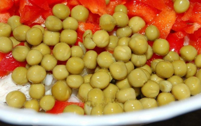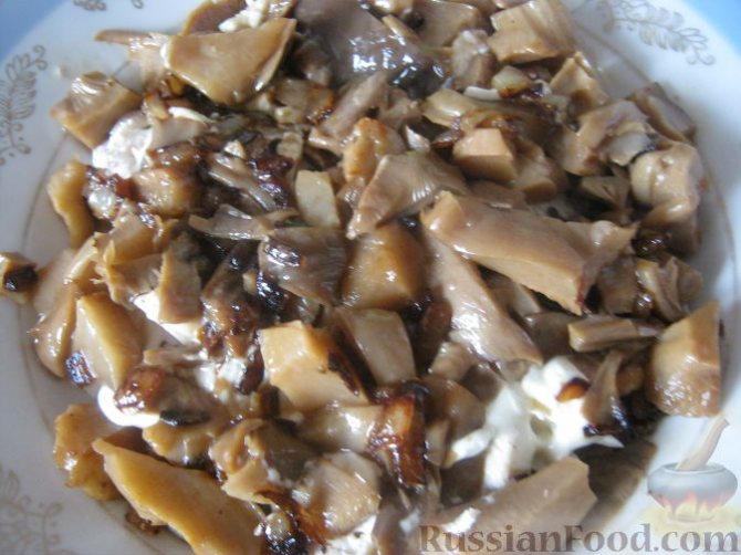 Второй слой — обжаренные грибы с луком (или чесноком).