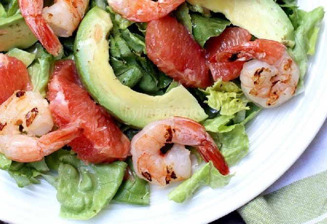 - Вкусный салат с креветками и авокадо