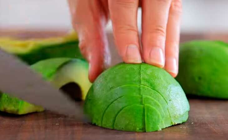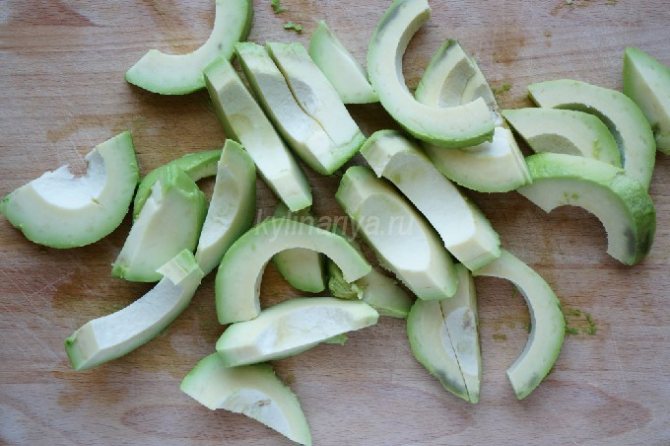 - Разрезаем авокадо на более мелкие дольки.
