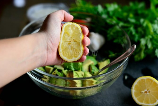 - Авокадо сбрызгиваем соком лимона.