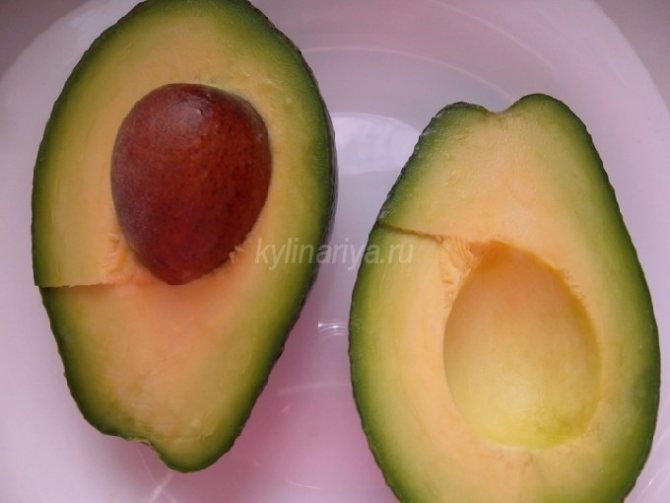 - Авокадо промываем и разрезаем на две половинки, чтобы удалить косточку.