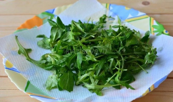 - Рукколу промываем и даем ей обсохнуть.