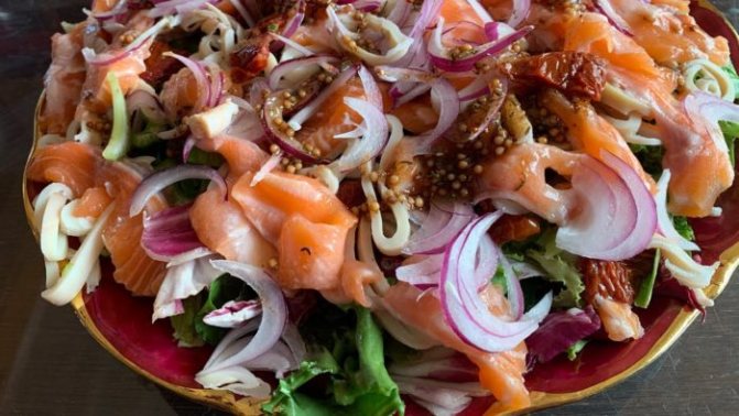 Салат с семгой– это деликатесное блюдо, которое станет украшением праздничного стола.