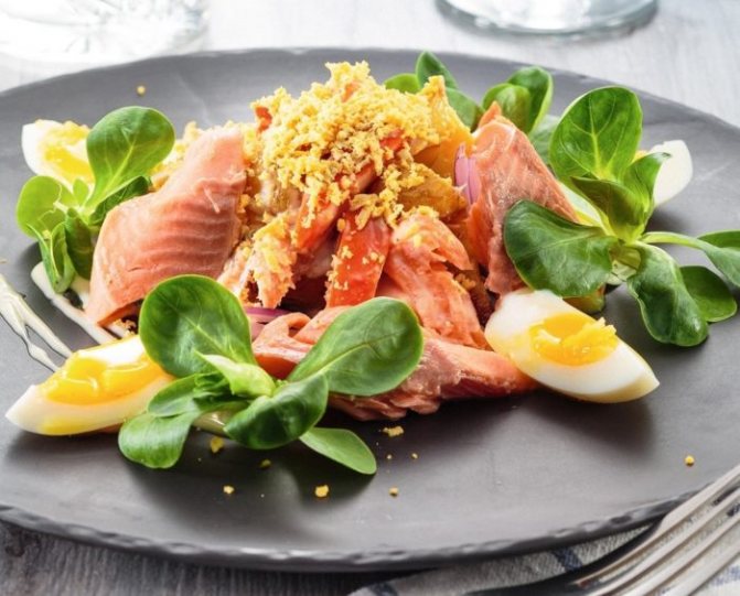 - Далее яйца и рыба.