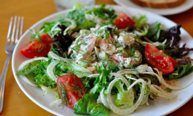 Салат с семгой слабосоленой может понравиться даже любителям классической кухни.