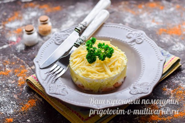 Слоеный салат «Норвежский» с овощами