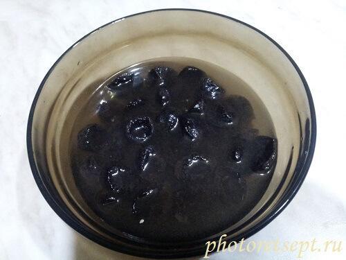 1. Чернослив замочить в кипятке на 15 минут.