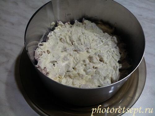 - орехи + слой майонеза