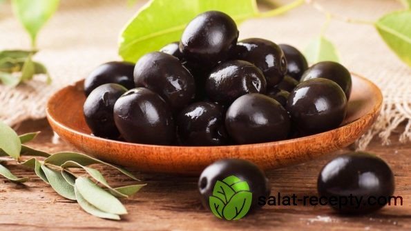 Открываем оливки, сливаем жидкость, и нарезаем их половинками. Оставляем несколько штук для украшения.