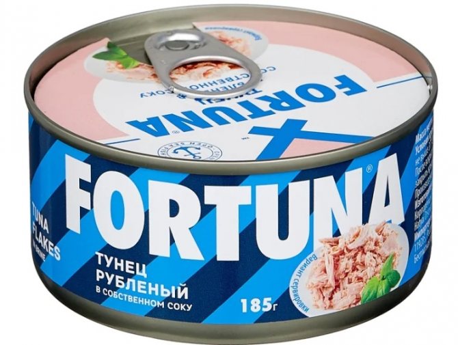 Консервированный тунец под брендом «Fortuna» производится в Таиланде. Производитель для своей продукции вылавливает рыбу, которая обитает в дикой природе. После этого она проходит жесткий контроль качества и только потом подвергается обработке и консервации.