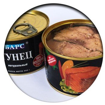 Тунец, пожалуй, единственный продукт, который не теряет своих уникальных качеств при особо длительной тепловой обработке. Поэтому он является самым натуральным поставщиком ненасыщенных архиважных жирных кислот таких, как омега-3 и омега-6. А ещё его часто называют телятиной морской из-за качественного, легко усваиваемого белка, жизненно нужный для людей. Тунец консервированный бывает кусковым или рубленым, в масле, собственном соку, маринадах или томате. Рыба в масле наиболее мягка, в остальных вариациях тунец более суховатый и диетический. Баночка консервы должна быть современного европейского образца, т. е. без бокового шва. Надо, безусловно, проверять сроки годности. Тунец – очень большая рыба, поэтому в ёмкостях, обычно, один кусок. Он эластичный, крупноволокнистый и без костей. Когда же несколько кусочков или рыба разлазится, то это не тунец, либо тунец, но весьма низкого качества.