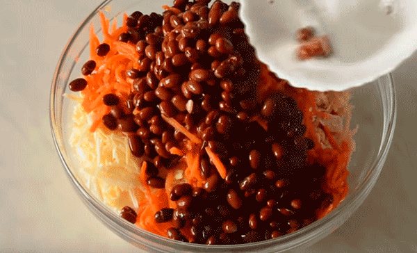 - Готовый салат следует украсить орехами кешью и сразу подавать.