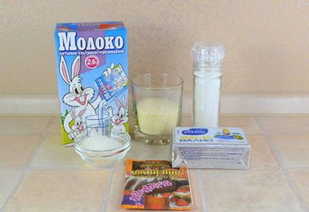 - Подготовьте молоко, манку, сахар и соль в необходимых пропорциях.