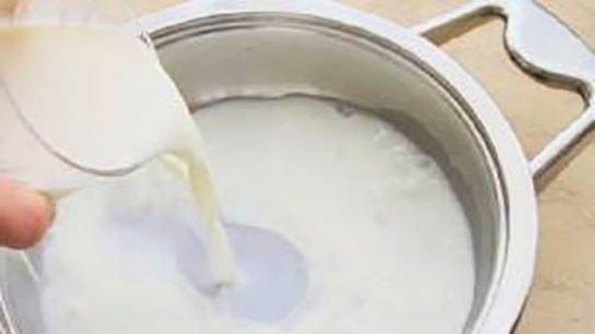- В кастрюлю влейте молоко и поставьте его на огонь.