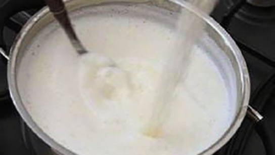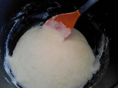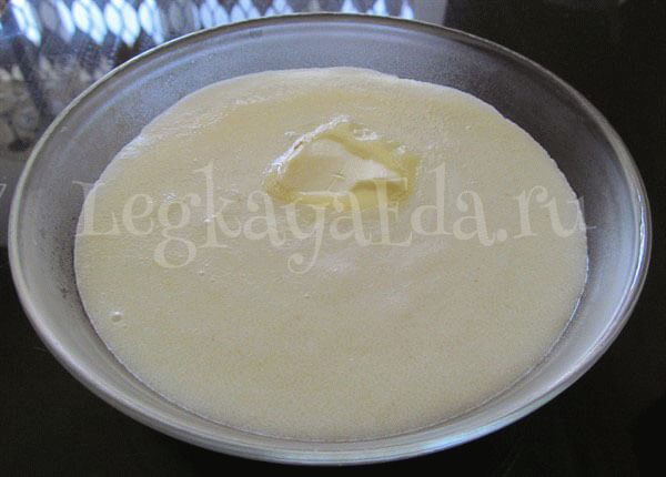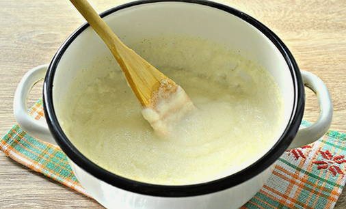 Для того чтобы комочки не образовывались, необходимо массу постоянно перемешивать.