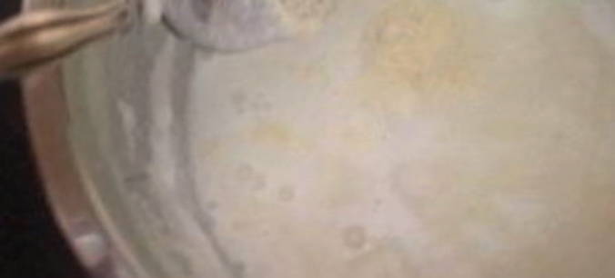 - В кипящее молоко всыпьте манную крупу. Ложку с манкой опускайте прямо в кипящее молоко, крупа сразу же будет собираться в комочки.