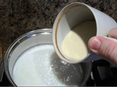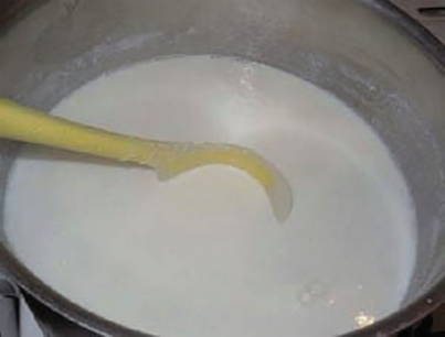 - Воду и молоко влейте в кастрюлю, доведите смесь до кипения.