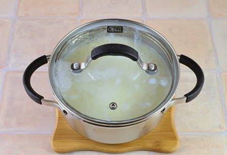 - Прикройте кастрюлю крышкой, снимите с огня и оставьте на пару минут.