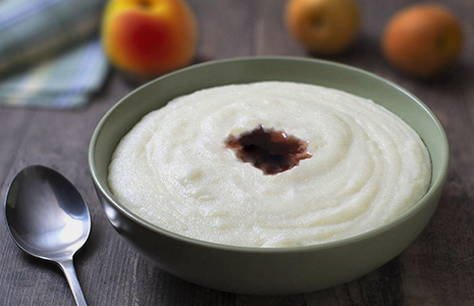 - Готовую кашу перед подачей сдабривают кусочком сливочного масла. Блюдо украшают джемом, вареньем. Можно добавить сухофрукты и любые орехи.