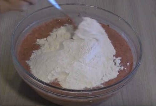 - Всыпаем порциями муку и замешиваем тесто.