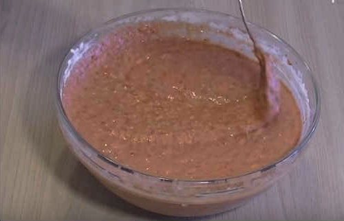 Готовое тесто должно быть довольно жидким. Даем ему постоять в холодильнике десять-пятнадцать минут, чтобы оно слегка загустело и стало более вязким.